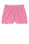Designed for cheer, dance and other activities, this jersey knit short has a classic exposed waistband that can be worn rolled or unrolled.