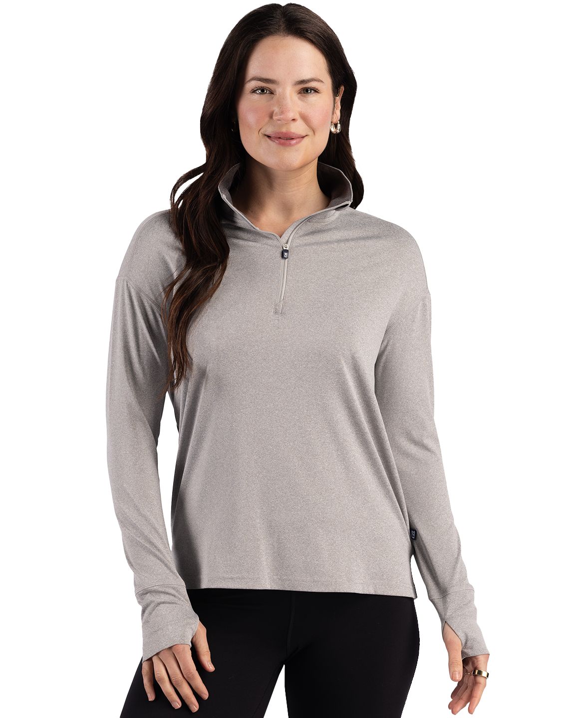 The airy, ultra-fine jacquard Cutter & Buck Prospect Recycled Featherlight Stretch Womens Quarter Zip is crafted for the innovators, the ever-ready, and those who push beyond. Part of the Epic Confidence Collection, designed with Cutter & Bucks Pacific Northwest heritage at its core, this lightweight layer blends elevated performance with a refined, modern lookempowering you to move through your day with assurance, from first meeting to last light. Crafted from a premium featherlight blend of 92% recycled polyester and 8% spandex, this womens quarter zip delivers lightweight stretch, moisture wicking comfort, and a polished feel that moves easily through the day. The GRS Certified post-consumer recycled polyester fabric features a refined jacquard texture for elevated style, while raglan sleeves enhance mobility and natural range of motion. A quarter zip mock neck provides adjustable coverage for changing conditions, and built in UPF 50+ UV protection offers added confidence during outdoor momentsmaking this a versatile, performance driven layer designed for work, travel, and everyday movement. - 92% Recycled Polyester, 8% Spandex Fine Gauge Jersey - Made from GRS certified post-consumer recycled polyester - Jacquard texture for elevated style - UPF 50+ UV Sun Protection - Moisture-wicking and breathable - Lightweight long sleeve quarter zip - Raglan sleeves for enhanced mobility - Soft, luxurious 4-way stretch for effortless movement - Machine Wash