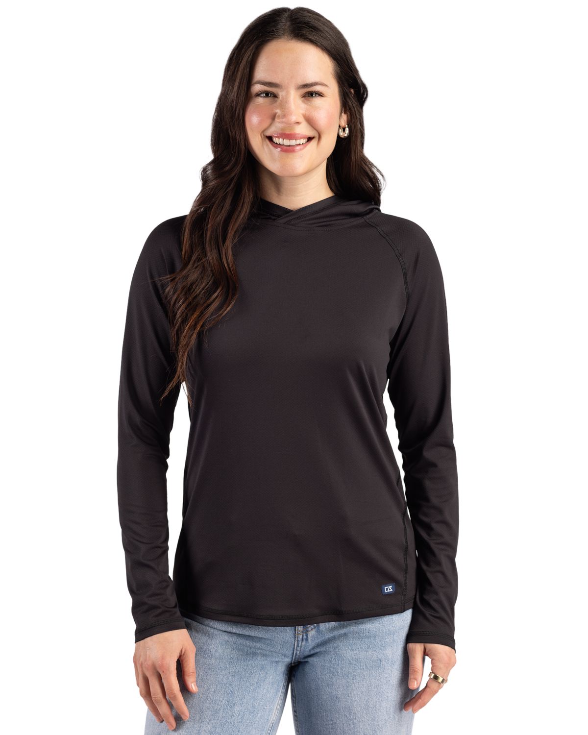 Designed for iconic days that move seamlessly from yoga mats to open trails, the airy comfort, Cutter & Buck Prospect Recycled Featherlight Stretch Womens Hooded Pullover delivers all-day ease, style, and polish. The soft & smooth jacquard weave delivers a sophisticated finish that transitions effortlessly from everyday wear to weekend comfort. Crafted with breathable, moisture-wicking stretch fabric, this layer is built to support movement without sacrificing style. Raglan sleeves allow for natural range of motion, while UPF 50+ sun protection offers added confidence on outdoor days. Responsibly made with GRS Certified post-consumer recycled polyester, it reflects Cutter & Bucks commitment to sustainability, quality, and timeless designperformance youll feel good wearing, season after season. Lightweight and versatile, its the layer youll reach for again and againwhether youre traveling, working, or unwinding. - 92% Recycled Polyester, 8% Spandex - Made with GRS Certified post-consumer recycled polyester - Airy comfort, all-day ease - Long sleeve hooded pullover - Raglan sleeves for enhanced mobility - Jacquard texture for elevated style - Moisture-wicking performance fabric - UPF 50+ UV Sun Protection - Machine Wash